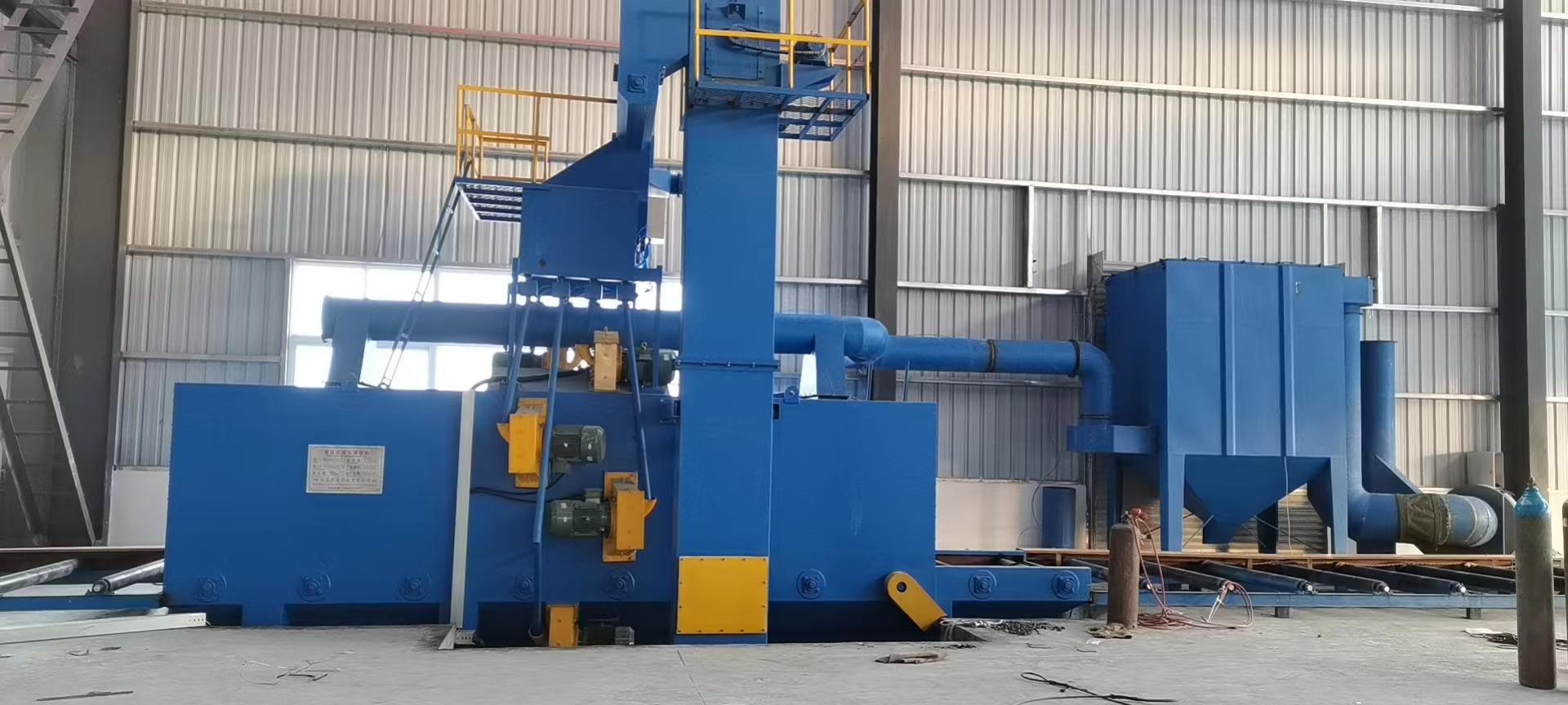 山東濱州鋼板預處理線拋丸機現場