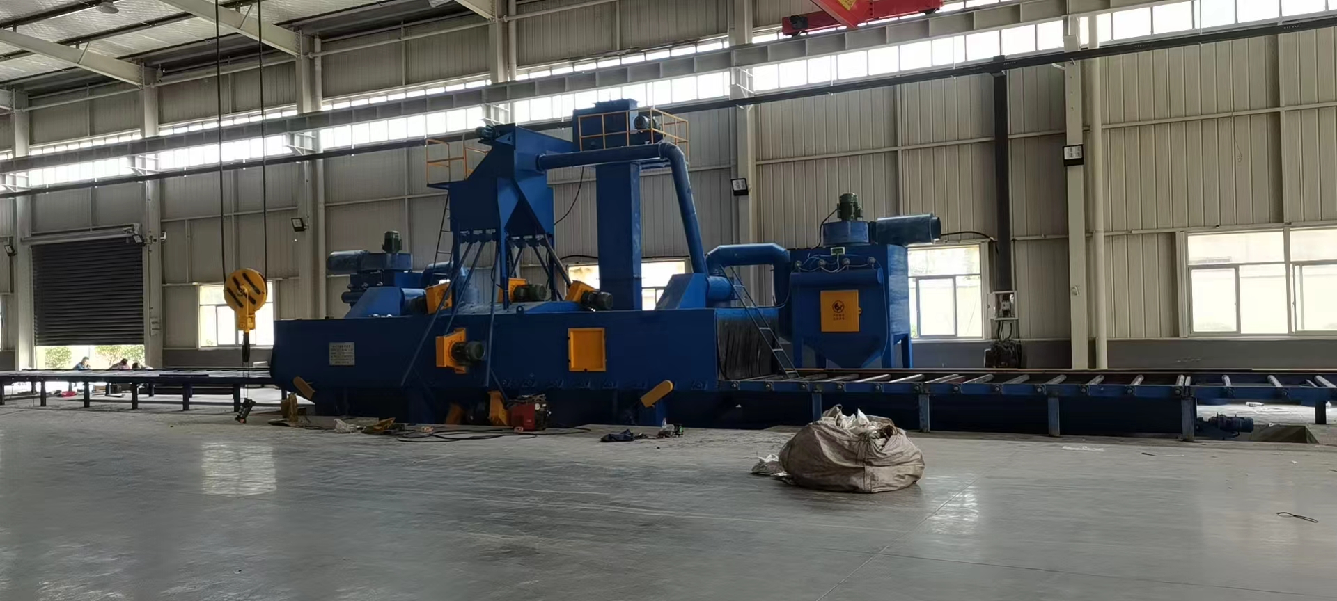 上圖是湖南客戶采購我公司的H型鋼輥道通過式拋丸機!